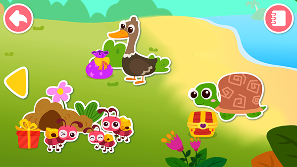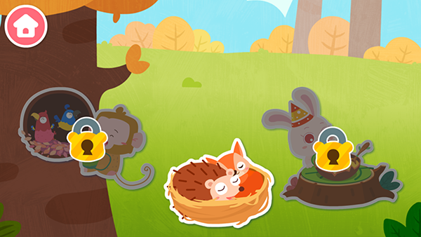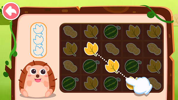 3、以小刺猬为例,进入后会遇到各种小动物,它们面临不同的挑战,现在我们需要一一帮助它们。